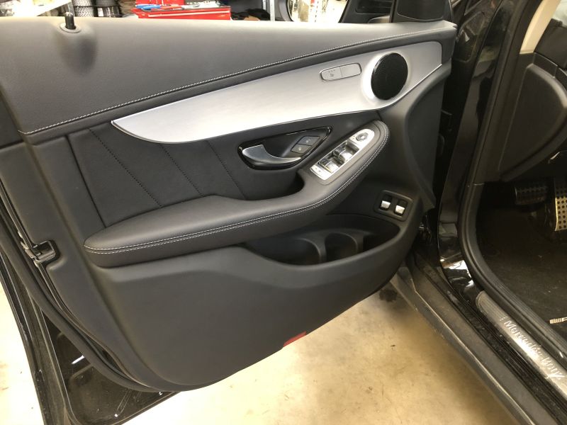Die fertig montierte Sounderweiterung in der Mercedes C-Klasse. Nichts klappert durch fachgerechten Ab- und Anbau der Teile, und alle Komponenten sind völlig verdeckt eingebaut.