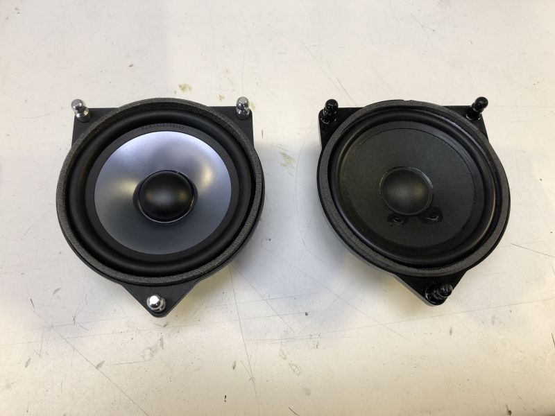 Die verbauten Lautsprecher sind schlechter Großserien-Standard. Der Subwoofer bringt es statt der möglichen 20cm gerade mal auf 16cm-Durchmesser. Die Mitteltöner mit Spezialbefestigung sind auf Wirkungsgrad und nicht auf Klang optimert. Ein Austausch ist hier aber nur mit fahrzeugspezifischen Lautsprechern empfehlenswert.