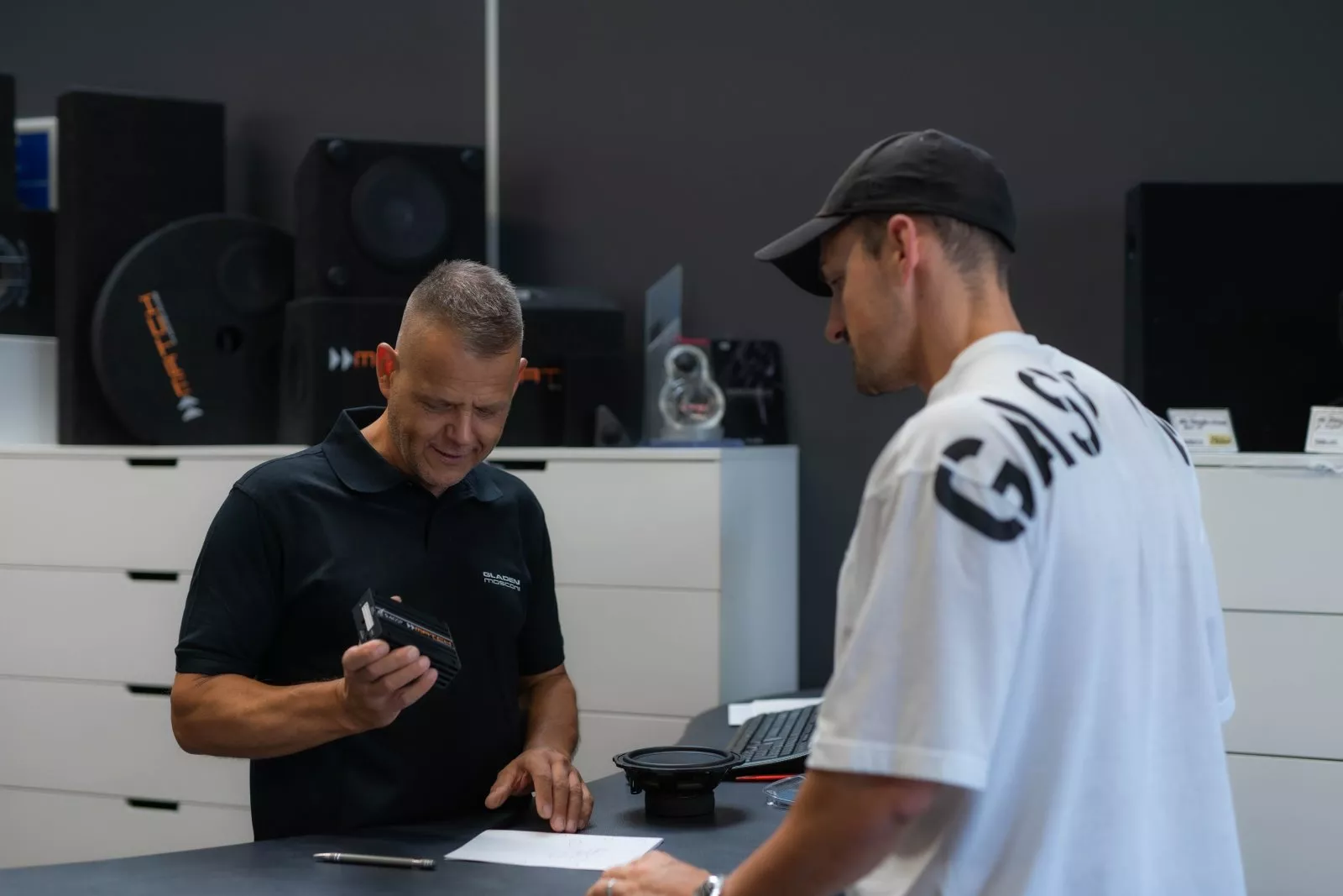 Im Ladengeschäft kannst du einzelne Komponenten wie Autoradios, Lautsprecher, Verstärker, Alarmanlagen und mehr kaufen und zu Hause selbst einbauen. Profitiere von unserer jahrelangen Erfahrung und lass dich vor Ort ausführlich beraten, welche Lösung am besten zu deinem Fahrzeug passt. Bring dein Fahrzeug gerne mit – vor unserem Geschäft findest du genügend Parkplätze. So können wir direkt am Auto gemeinsam besprechen, was du verändern möchtest.