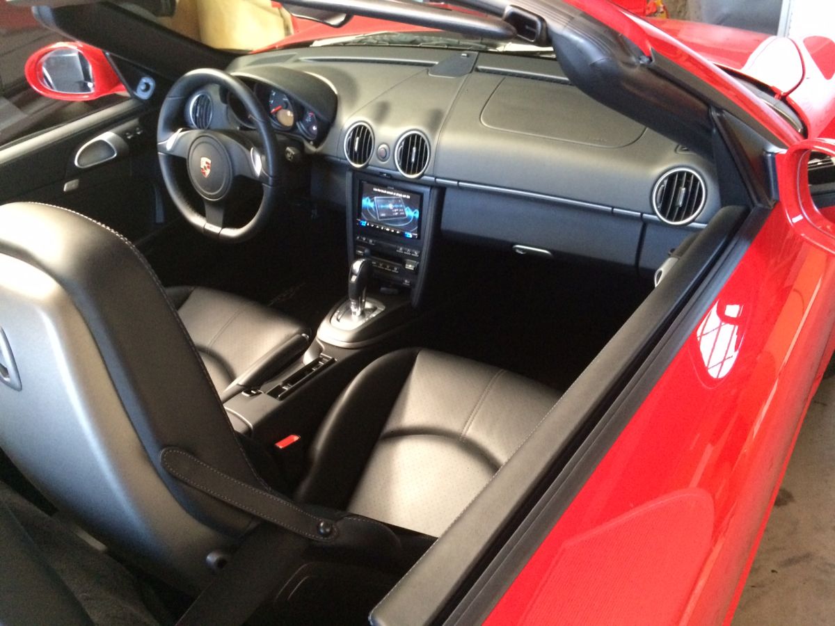 Austauschnavigationssystem Alpine INE-W 710D mit fahrzeugspezifischer Radioblende im Porsche Boxster.